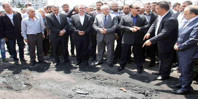 Tartous / Sur directives du président Bachar al-Assad, le Secrétaire régional adjoint du Parti Baas Arabe Socialiste, a inspecté le lieu de l’attentat terroriste survenu hier dans la zone de la nouvelle gare à Tartous et s’y est informé de l’ampleur des dégâts.