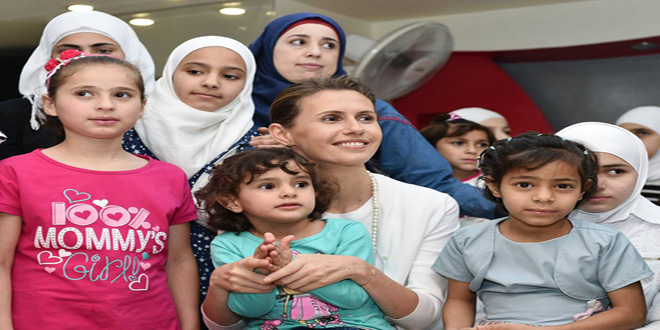 Mme al-Assad a affirmé le rôle important que joue l’orphelinat dans la protection de cette couche, au niveau psychologique et pédagogique, assurant que cette tâche occupe le plus haut degré de l’action humanitaire.