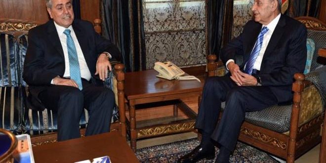 Beyrouth/Le président de la Chambre des députés libanaise, Nabih Berri, a abordé aujourd’hui avec l’ambassadeur de Syrie au Liban, Ali Abdel Karim, les développements en Syrie et au Liban.