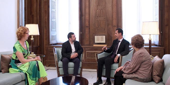 10/07/2016 Razane / A. Chatta Le président Bachar al-Assad rencontre une délégation parlementaire européenne 2016-07-10 admin Share tweet