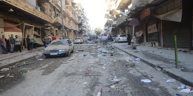 Alep / Les groupes terroristes affiliés au réseau «Front Nosra» et au soi-disant «Ahrar al-Cham» ont continué à viser avec des dizaines de roquettes et de balles explosives les quartiers d’Alep.