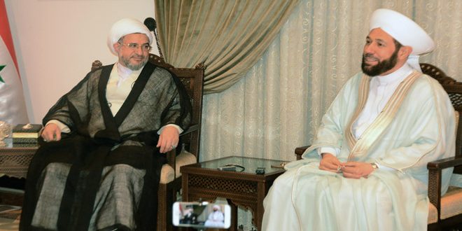 Recevant une délégation des Ulémas de la République islamique iranienne présidée par Mohsen Araki, Secrétaire général du Conseil mondial pour le Rapprochement des écoles islamiques, Hassoun a indiqué que les Syriens, malgré les tentatives de l’extérieur de semer la division entre eux, mais ils demeurent une seule main face au terrorisme takfiriste visant les valeurs et les principes de toutes les religions.