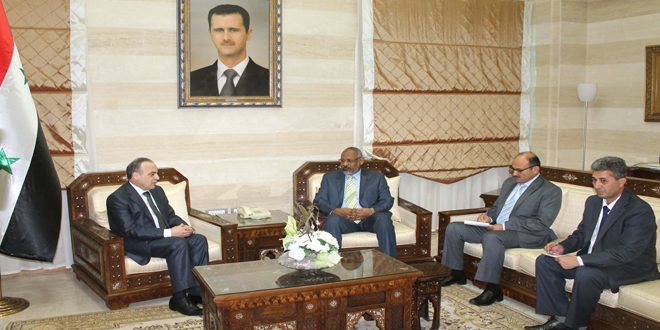 Damas/ Le président du Conseil des Ministres, Imad Khamis, a examiné avec l’ambassadeur de Soudan à Damas, Khaled Ahmad Mohammad, les mécanismes de renforcement et de développement de la coopération entre les deux pays dans les domaines commercial, agricole, culturel et d’investissement.