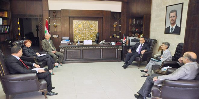 Damas/ Le ministre de la santé, Nizar Yazaji, a passé en revue aujourd’hui avec le chef de la mission du Comité international de la Croix-Rouge à Damas «CICR», Marianne Gasser, les mécanismes de coopération et de coordination pour assurer les besoins du secteur sanitaire à Alep à l’ombre des attaques terroristes poursuivantes contre ses quartiers.