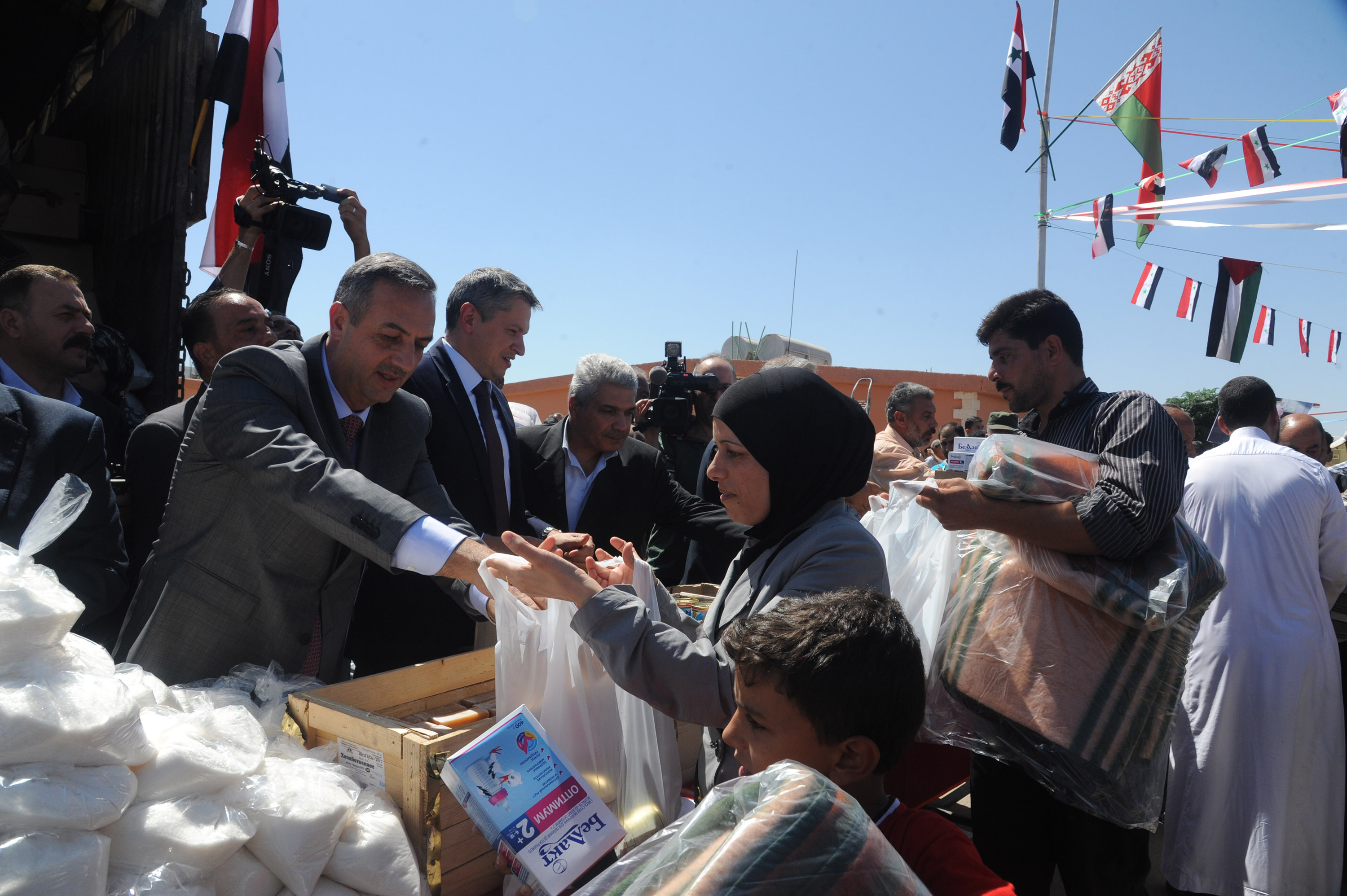 20/09/2016 Razane L'ambassadeur de Biélorussie et le gouverneur de la banlieue de Damas participent à la distribution des aides biélorusses aux familles résidant dans les centres d'accueil provisoire 2016-09-20 admin Share tweet