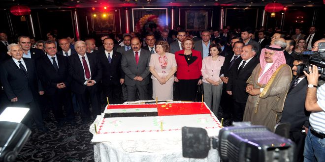 Damas/ L’ambassade de Chine à Damas a organisé ce soir une réception à l’hôtel de Dama Rose à l’occasion du 67ème anniversaire de la fondation de la République Populaire de Chine et le 60ème anniversaire de l’établissement des relations diplomatiques syro-chinoises.