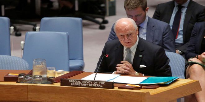 New York/ L’émissaire spéciale de l’Onu pour la Syrie, Staffan de Mistura, a réitéré que la crise en Syrie ne sera résolue militairement.