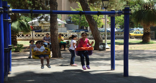 Damas / Des centaines de familles syriennes ont afflué de différents quartiers damascènes et des faubourgs de Damas sur les restaurants et les cafés pour s’amuser et jouir des ambiances de l’Aïd de Fitr.