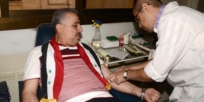 03/10/2016 Razane / A. Chatta Campagne de don de sang à Alep en signe d’appui aux blessés de l’armée arabe syrienne 2016-10-03 admin Share tweet