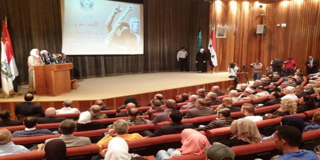 Damas /Dans le cadre des travaux de la journée culturelle d’al-Qods et en commémoration du premier an de l’Intifada d’al-Qods, les travaux de la Rencontre «al-Qods, poule de l’Intifada», organisée par l’institution internationale d’al-Qods-branche de Syrie, ont commencé aujourd’hui à Damas.