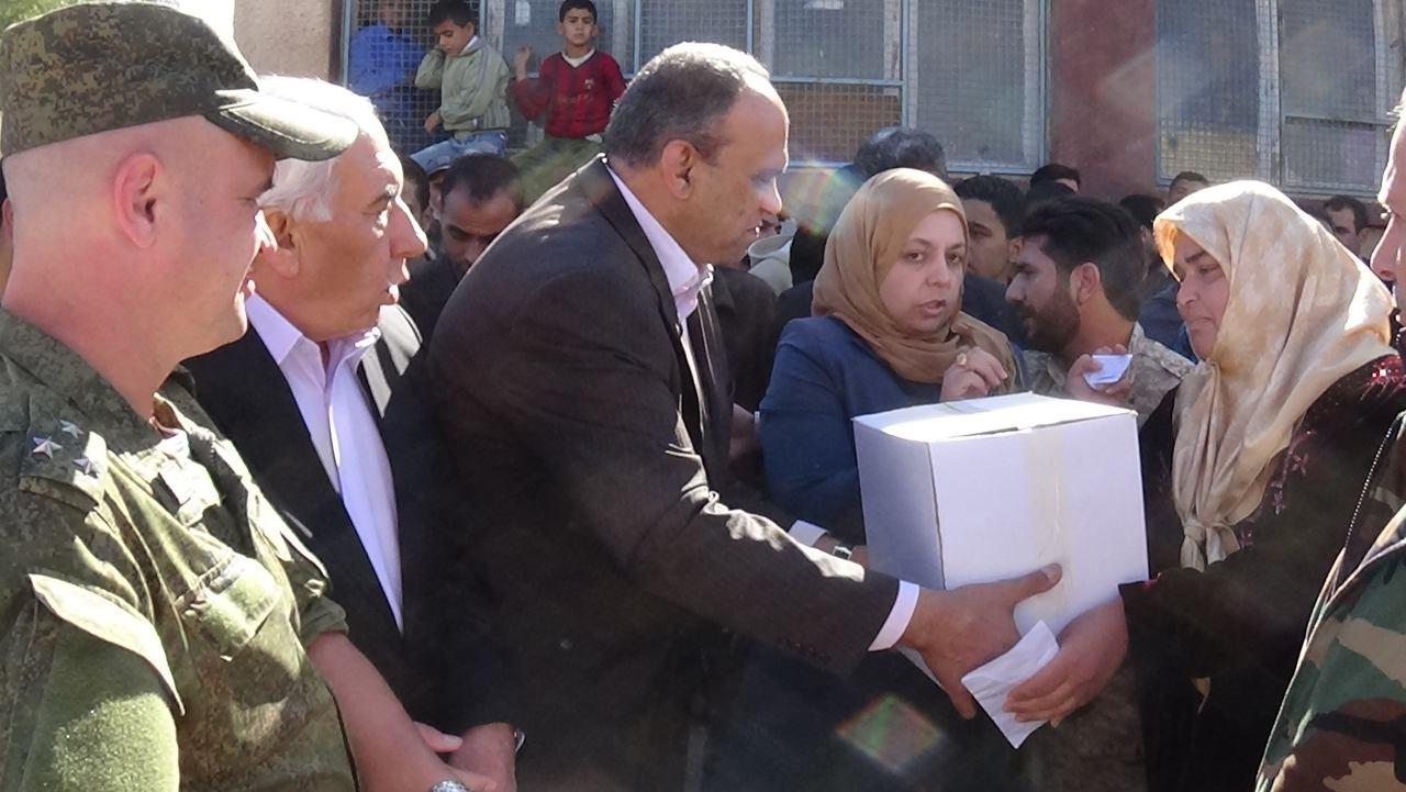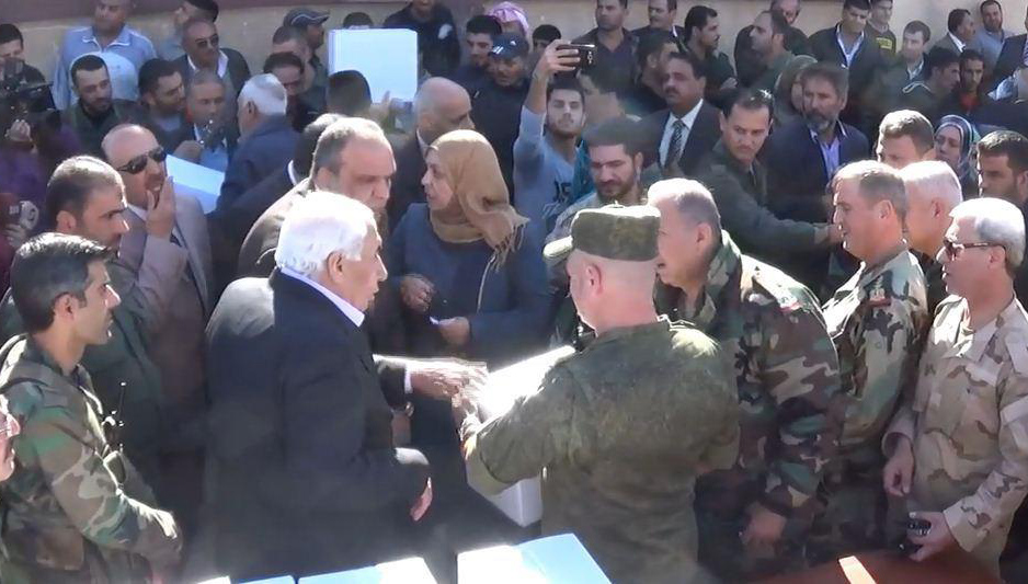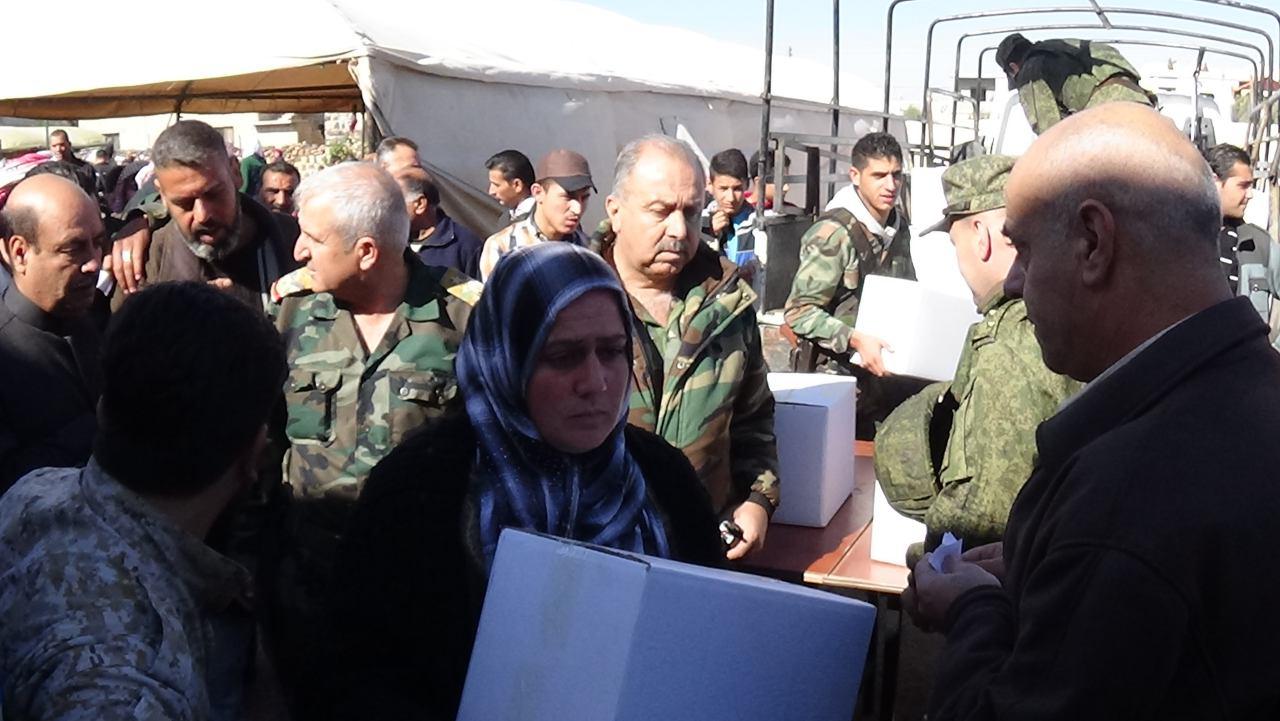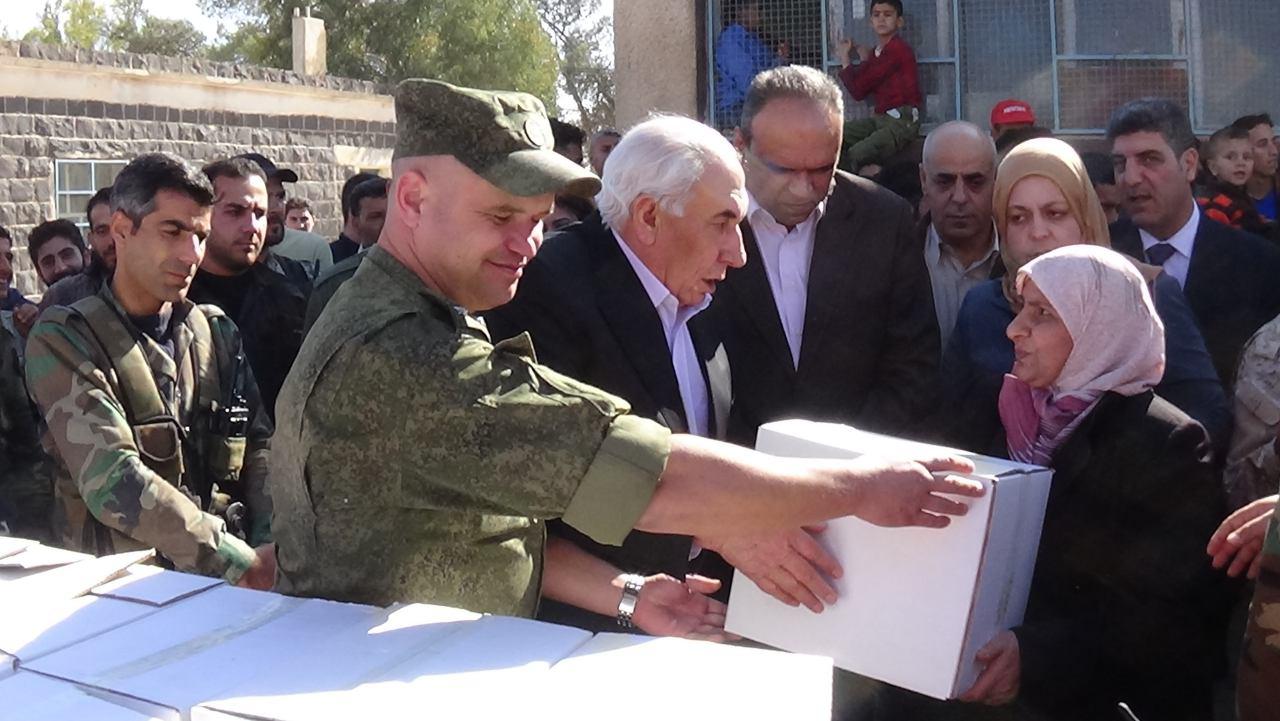 18/11/2016 Razane Distribution de 200 paniers alimentaires octroyées par la Russie aux personnes déplacées dans la localité de Mouthabine à Daraa 2016-11-18 admin Share tweet