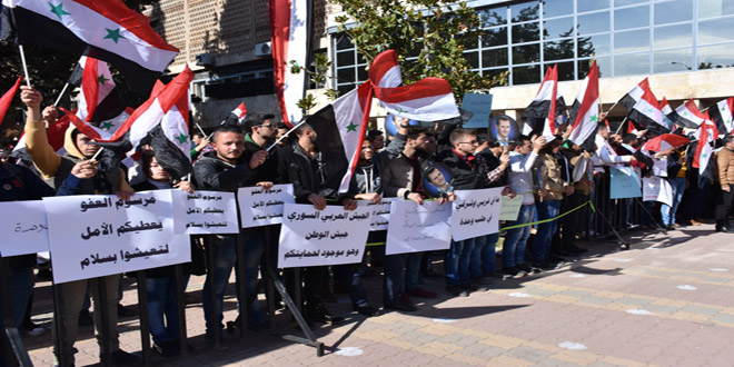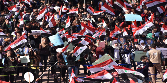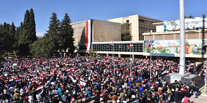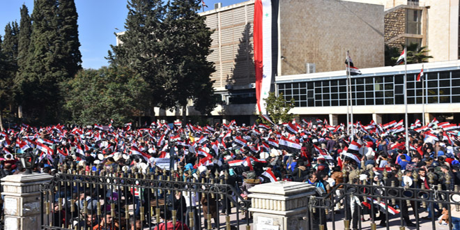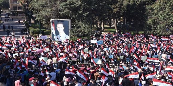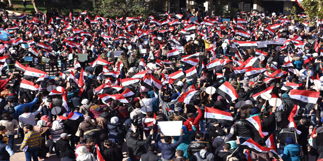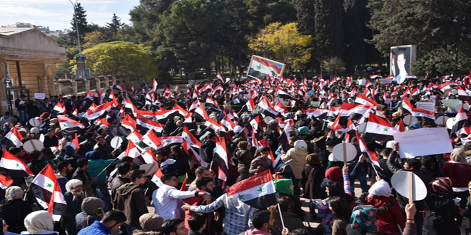 21/11/2016 D.H./ L.A. Les étudiants d'Alep se solidarisent avec les habitants assiégées par les réseaux terroristes dans les quartiers est du gouvernorat 2016-11-21 dima Share tweet