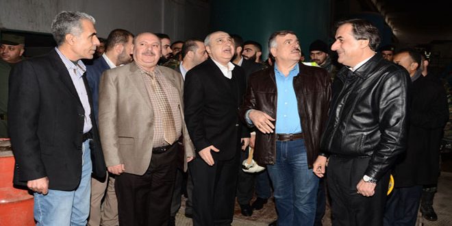 Alep / Les deux ministres des ressources hydrauliques, Nabil Hassan, et de l’électricité, Mohammad Zuheir Kharboutli, ont mené une visite d’inspection à la station de Souleymane Halabi du pompage d’eaux et s’y sont informés des travaux en cours pour réparer les pannes et les dégâts dus aux actes terroristes avant sa stabilisation par l’armée arabe syrienne.