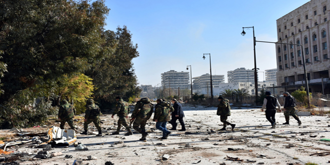 10/12/2016 Des armes et des munitions abandonnées par les terroristes dans les quartiers est d’Alep 2016-12-10 L.alarfi Share tweet