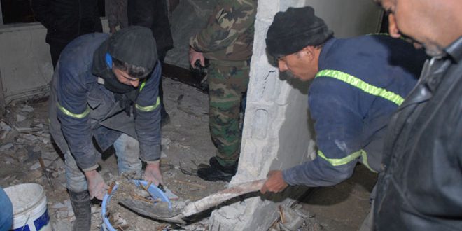 Une source du Commandement de la police à Damas a indiqué à SANA que des terroristes avaient exploité une fillette de 8 ans environ et l’avaient poussée à porter une petite charge explosive et à entrer dans le poste de police de Midane sous prétexte qu’elle a perdu sa maison, disant : « Dans quelques minutes, les terroristes ont fait exploser la charge, ce qui a causé la mort de la fillette et la blessure d’un élément du poste de police ».