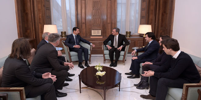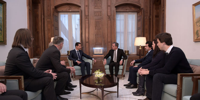 08/01/2017 D.H./ R.B. Le président Bachar al-Assad reçoit une délégation de l’Assemblée nationale française et nombre d'intellectuels 2017-01-08 dima Share tweet