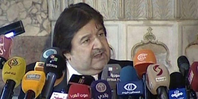 Damas/ Le ministre de la Culture Mohammad al-Ahmad, a condamné , dans une conférence de presse qu’il a tenue dans la musée nationale de Damas, la destruction de la façade du théâtre romain et le Tétrapyle à Palmyre par les terroristes de «Daech, la qualifiant de «crime de guerre et une exigence sioniste par excellent».