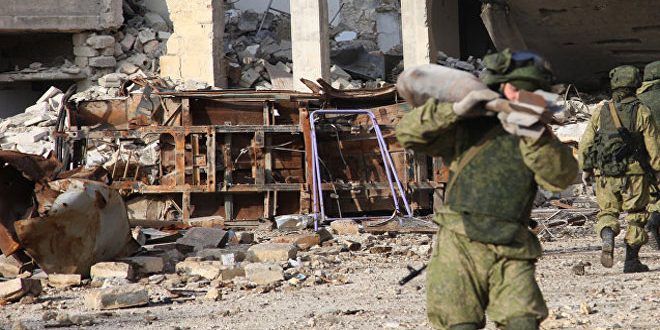 Le Centre de Coordination russe à Hmeymim a précisé aujourd’hui dans un communiqué que des démineurs russes avaient purifié 63 maisons et 6 mosquées des engins explosifs dans les quartiers est d’Alep.