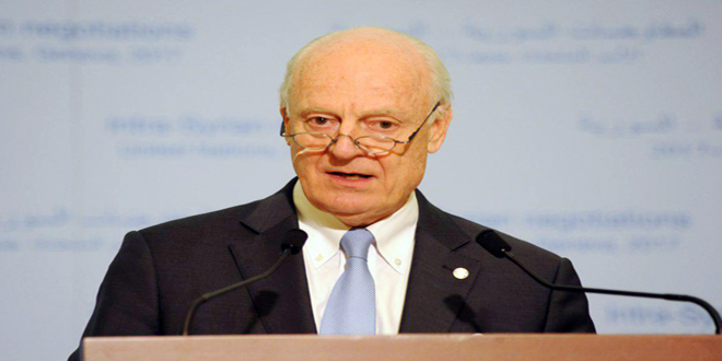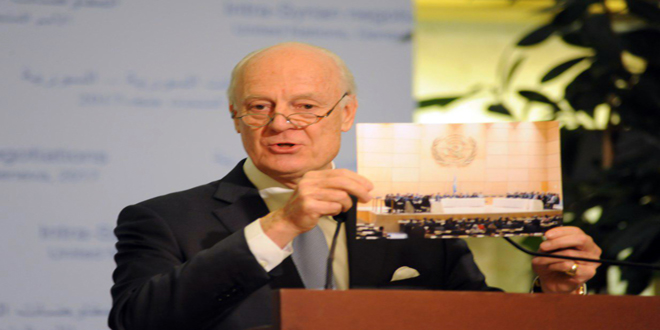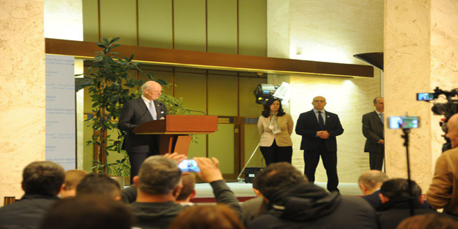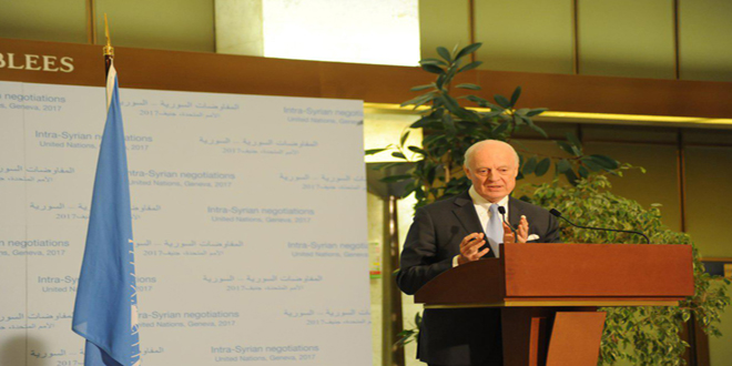 04/03/2017 Related Articles Les représentants des pays garants examinent avec de Mistura à Genève les deniers développements en Syrie 11/09/2018 Jaafari : Certains membres du CS ont donné dans leurs communiqués une image falsifiée sur la situation en Syrie 27/06/2018 Bogdanov : Les pays garants du processus d’Astana tiendront des consultations les 18 et 19 du mois en cours à Genève 15/06/2018 D.H./ R.B. Conférence de presse de l'émissaire spécial de l’ONU pour la Syrie Staffan de Mistura 2017-03-04 dima Share tweet