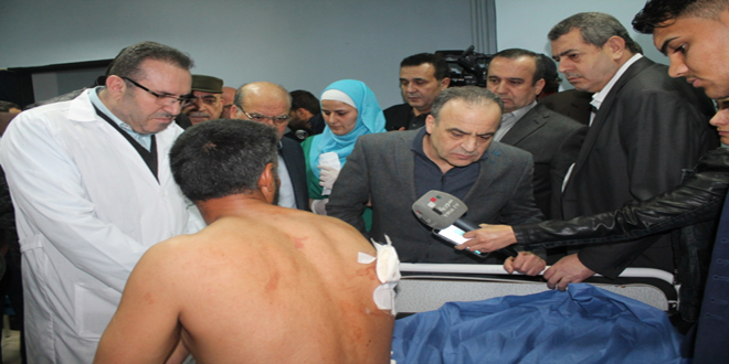 12/03/2017 Khamis présente ses condoléances aux familles des martyrs du double attentat terroriste survenu à Damas et se rend au chevet des blessés dans les hôpitaux de Moujtahed er Mouassat 2017-03-12 Rim Fawaz Share tweet