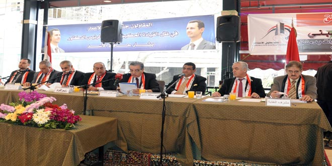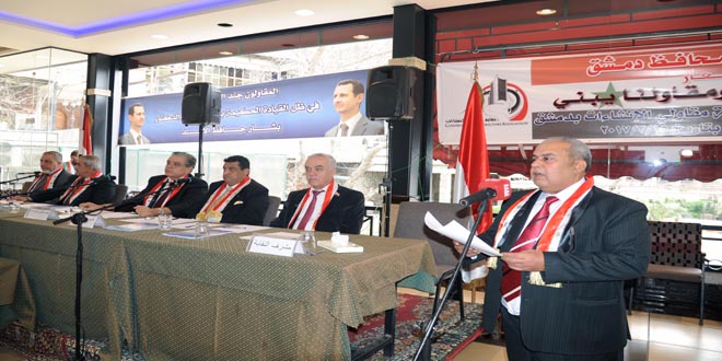 16/03/2017 Le comité général du Syndicat des entrepreneurs en construction /Branche de Damas/ tient sa conférence annuelle générale sous le tire ''l'armée protège et les entrepreneurs construisent'' 2017-03-16 dima Share tweet