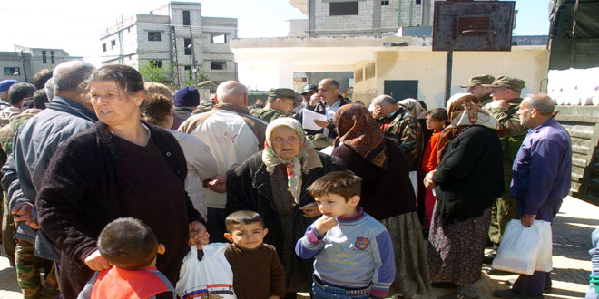 19/03/2017 Distribution d'aides humanitaires octroyées par la Russie à la population du village de Jandariyah dans la banlieue de Lattaquié 2017-03-19 dima Share tweet