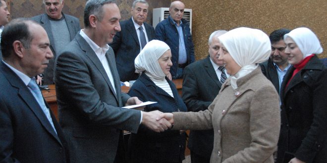 20/03/2017 Related Articles À l’occasion de la fête de la mère, le centre “Sawa” pour le traitement des blessés de la guerre à Hama rend hommage à un certain nombre de blessés 19/03/2017 Razane À l'occasion de la fête de la mère hommage aux mères travailleuses dans le gouvernorat de la banlieue de Damas 2017-03-20 admin Share tweet