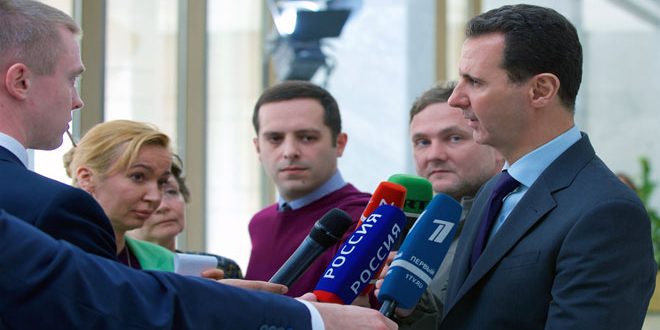 Damas / Le président Bachar al-Assad a affirmé que le gouvernement syrien soutient toutes les initiatives russes, non pas uniquement la suggestion russe de former une commission pour examiner l’élaboration d’une nouvelle Constitution.