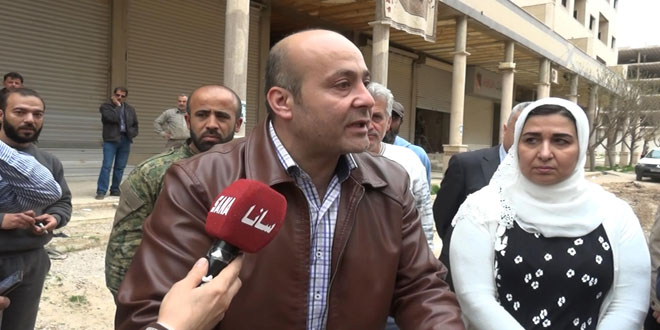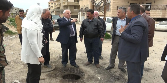 31/03/2017 Le gouverneur de la banlieue de Damas inspecte les services dans le petit village à Achrafyiat Sehnaiya 2017-03-31 dima Share tweet