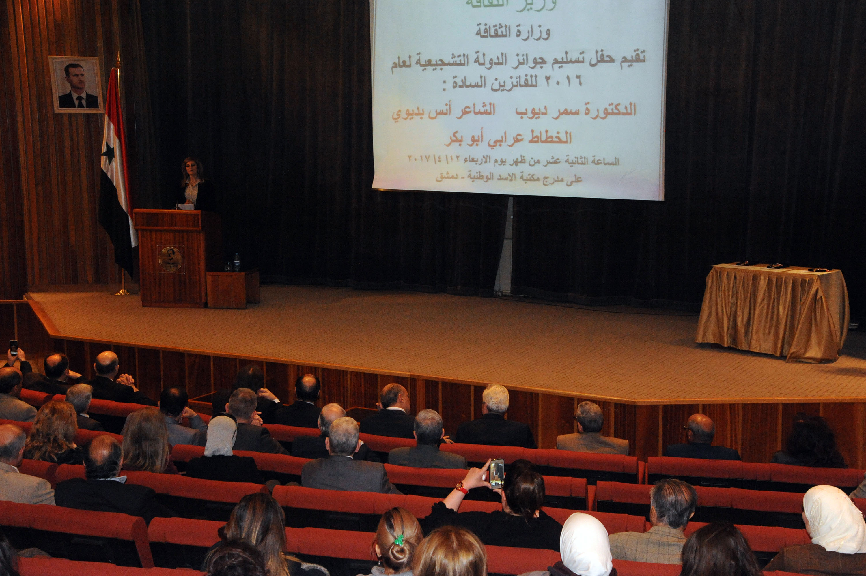 12/04/2017 Le ministère de la Culture rend hommage aux gagnants du prix d'encouragement de l'État pour l’an 2016 à la bibliothèque nationale d’al-Assad 2017-04-12 Rim Fawaz Share tweet