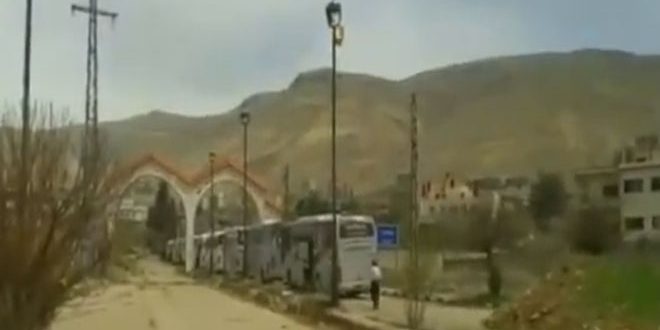 Damas/ Dans le cadre de l’accord conclu sur la sortie des habitants des deux localités de Kafraya et Fouaa dans la banlieue d’Idleb, qui sont assiégées depuis plus de deux années par les réseaux terroristes, et sur la sortie des hommes armés avec leurs familles de Zabadani et Madhaya, 75 autobus et 20 ambulances, transportant à bord nombre d’habitants des deux localités, s’étaient partis vers la zone de Rachdine à l’ouest d’Alep, sous la supervision du Croissant Rouge syrien.