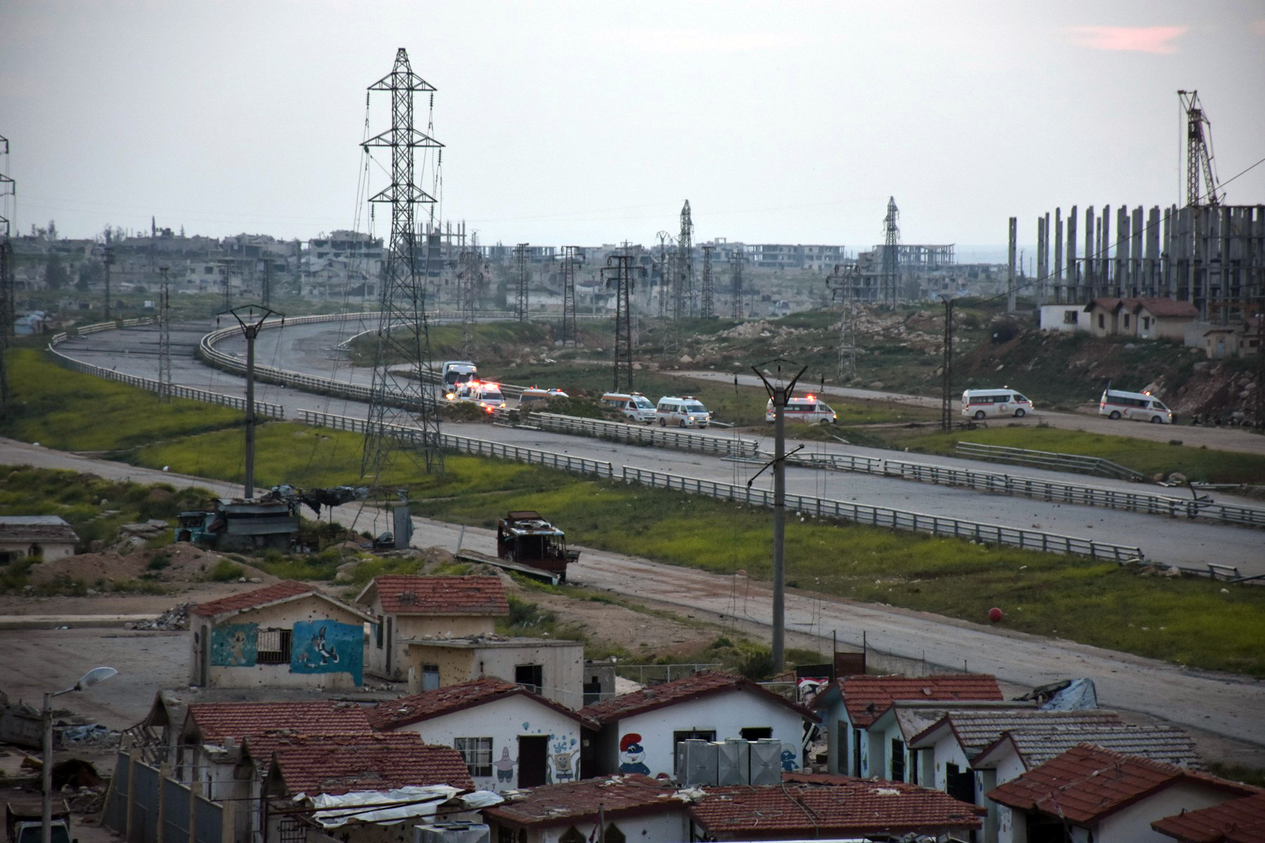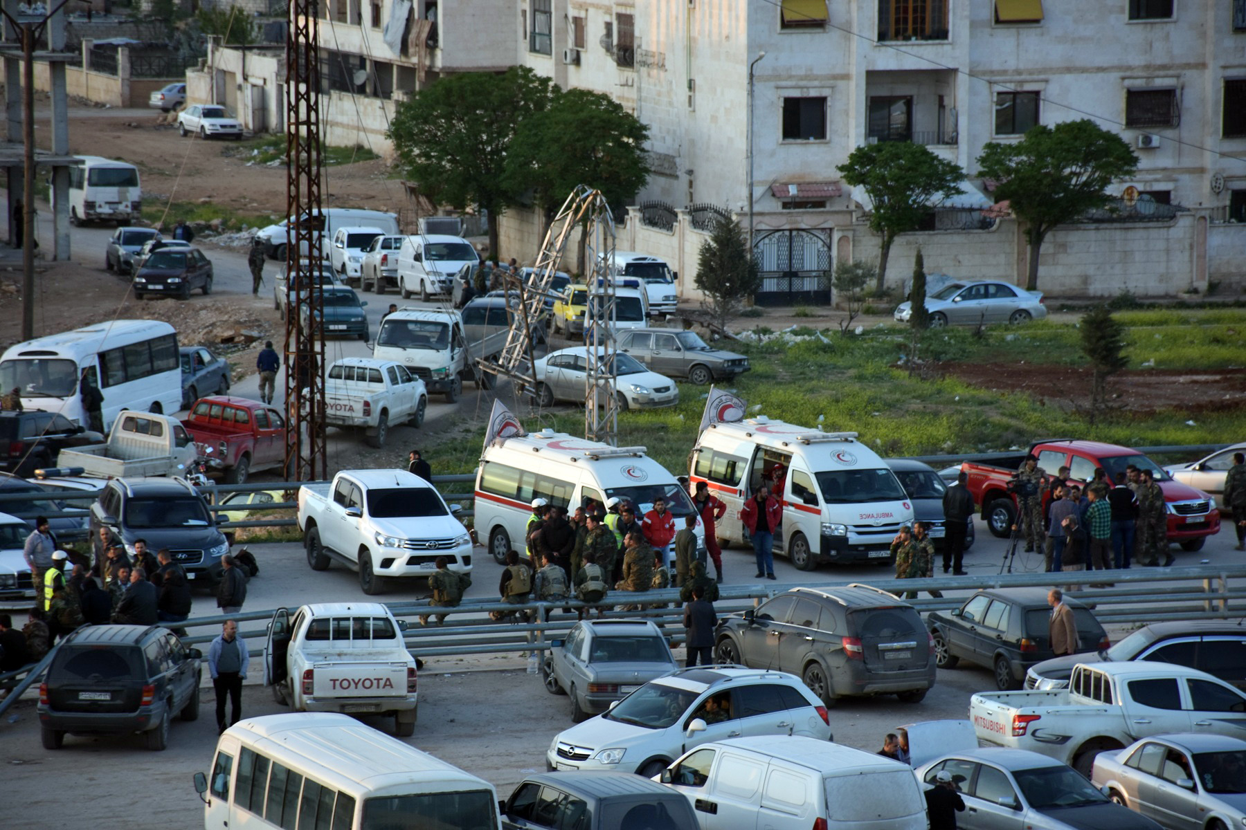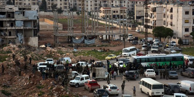 16/04/2017 Arrivée à Alep de la 1ère partie des habitants des deux localités de Kafraya et Fouaa 2017-04-16 admin Share tweet