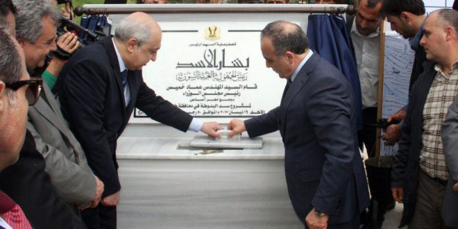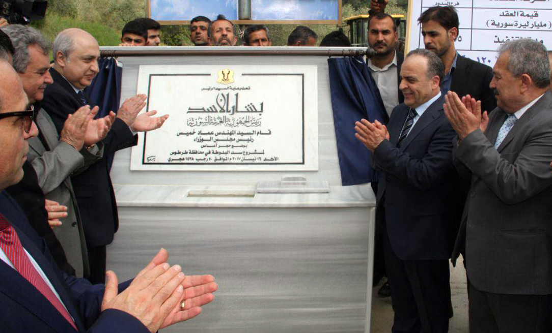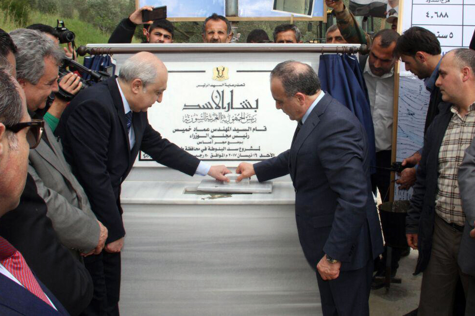 17/04/2017 dans la zone de Cheikh Badr à Tartous Khamis pose la 1ère pierre du projet du barrage de Balloutta l’un des affluents de la rivière de Husseine 2017-04-17 admin Share tweet