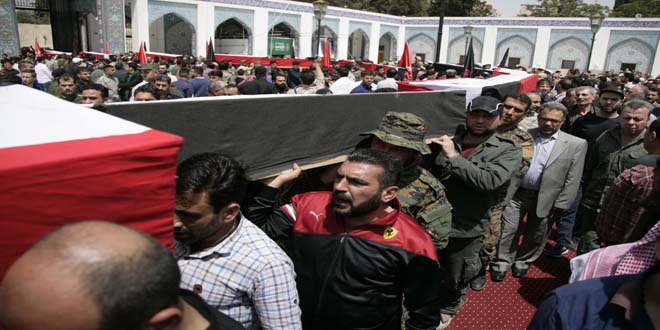 27/04/2017 Related Articles Avec une participation officielle et populaire, obsèques dans la banlieue de Damas des martyrs des deux localités de Kafraya et Fouaa 26/04/2017 Avec une participation officielle et populaire, obsèques des martyrs de l’attentat terroriste qui s’est produit dans la ville de Jableh 07/01/2017 Avec une participation officielle et populaire, obsèques des martyrs de l’attentat terroriste survenu à Jableh 06/01/2017 Avec une participation officielle et populaire obsèques à Sayyeda Zeinab dans la banlieue de Damas des martyrs des deux localités de Kefraya et Fouaa 2017-04-27 Rim Fawaz Share tweet