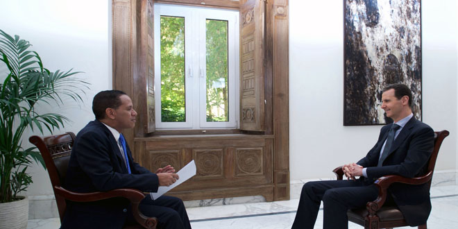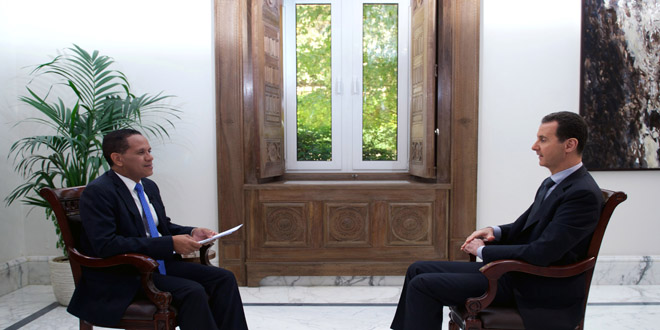 28/04/2017 L'interview accordée par le président Bachar al-Assad à la Chaîne de télévision vénézuélienne ''Telesur'' 2017-04-28 dima Share tweet