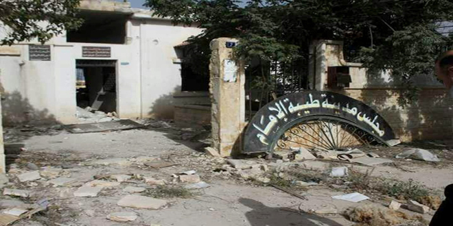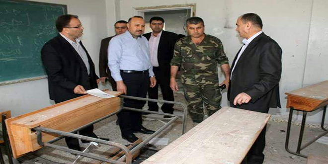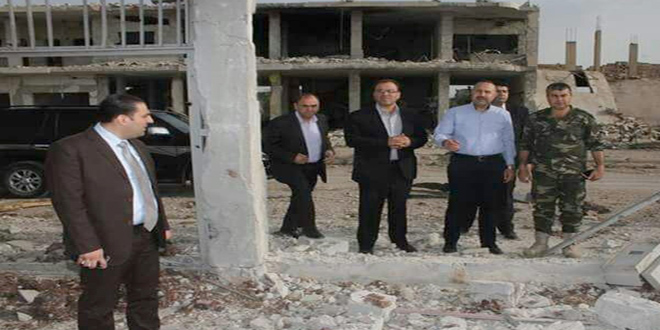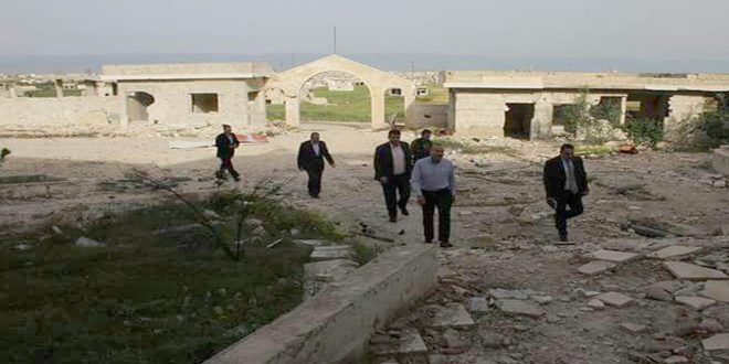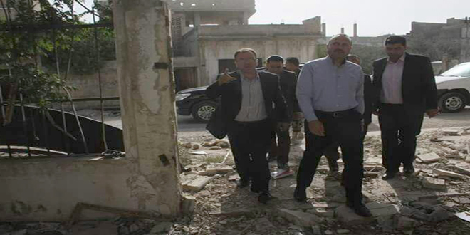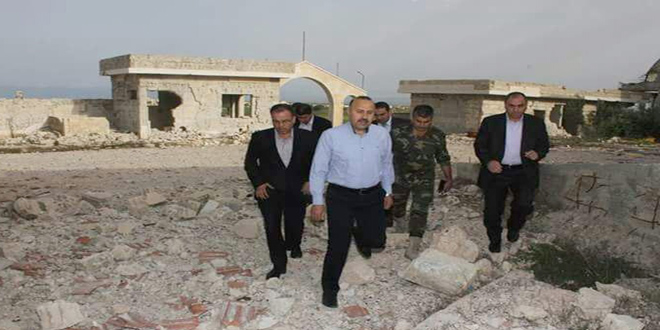 28/04/2017 Le gouverneur de Hama s'informe de l'ampleur des dégâts causés dans l'infrastructure et les propriétés dans les deux localités de Taybet Imam et Helfaya à la suite des attaques terroristes 2017-04-28 dima Share tweet