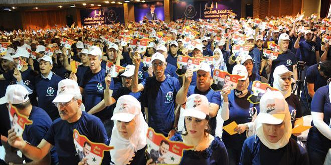 02/05/2017 https://youtu.be/jQ5Zk2TBCwM Meeting central à l’occasion de la journée des travailleurs au complexe de Sahari dans la banlieue de Damas 2017-05-02 Rim Fawaz Share tweet