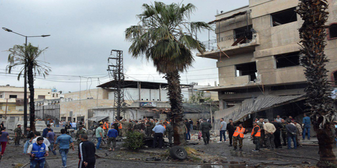 23/05/2017 Deux martyrs et des blessés dans un attentat terroriste survenu à proximité du rond-point de Bab Tadmor dans la ville de Homs 2017-05-23 dima Share tweet
