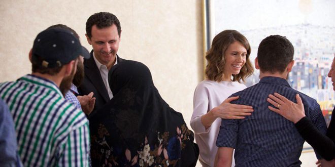 Le président al-Assad et son épouse ont félicité les personnes enlevées pour leur mise en liberté et pour la fin de leur souffrance.