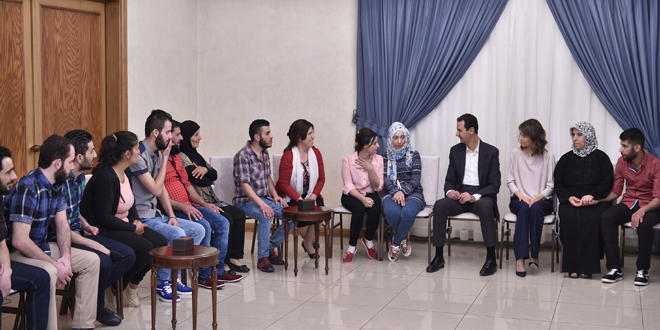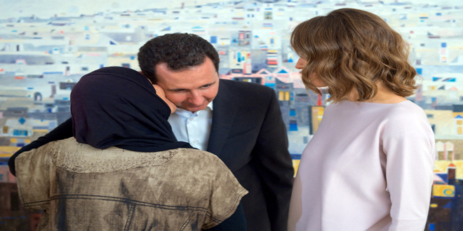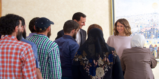 02/06/2017 Le président Bachar al-Assad et son épouse reçoivent 34 personnes mises en liberté 2017-06-02 Rim Fawaz Share tweet