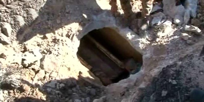 Le correspondant de SANA à Homs a dit que pendant le ratissage du quartier de Waer, les services compétents avaient découvert un tunnel de 500 mètres de longueur, s’étalant d’une cache des terroristes à Jazzira 8, à la zone de Qassab à l’ouest du quartier.