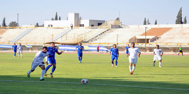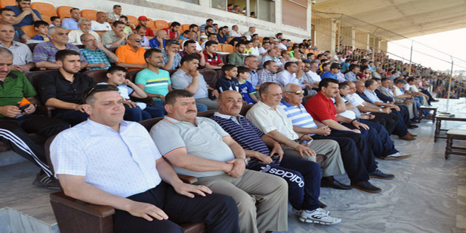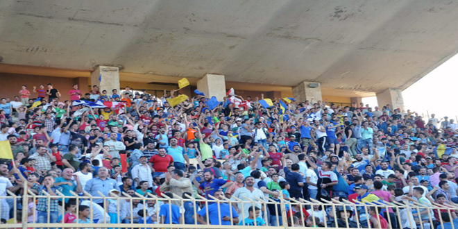 Match entre les deux équipes, Nawa’ire et Fotouwa, dans le stade municipal à Hama