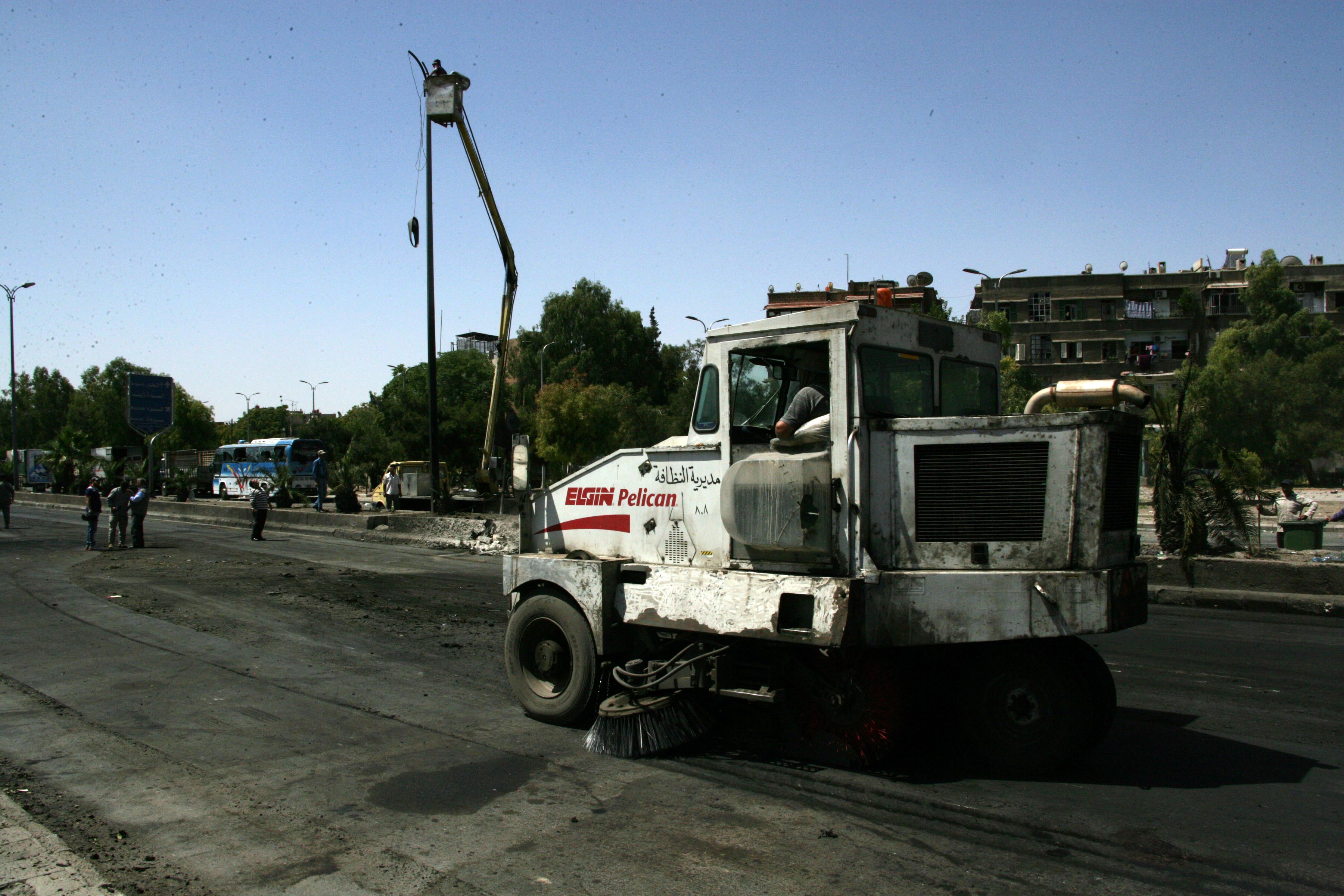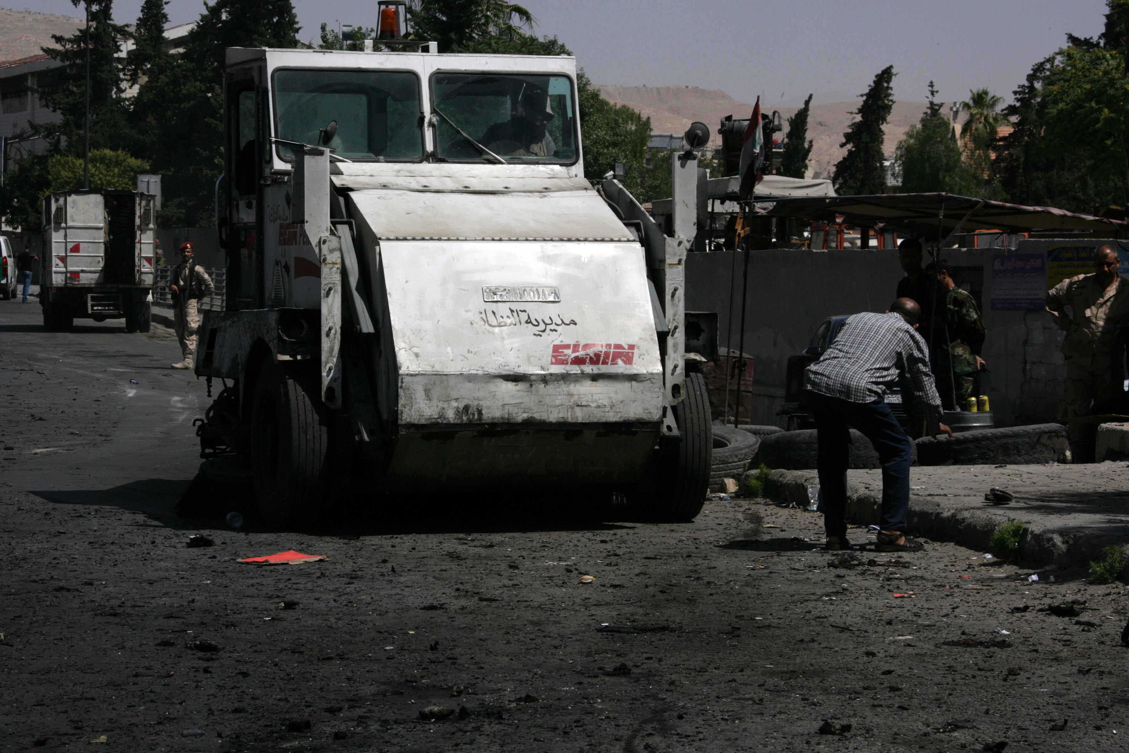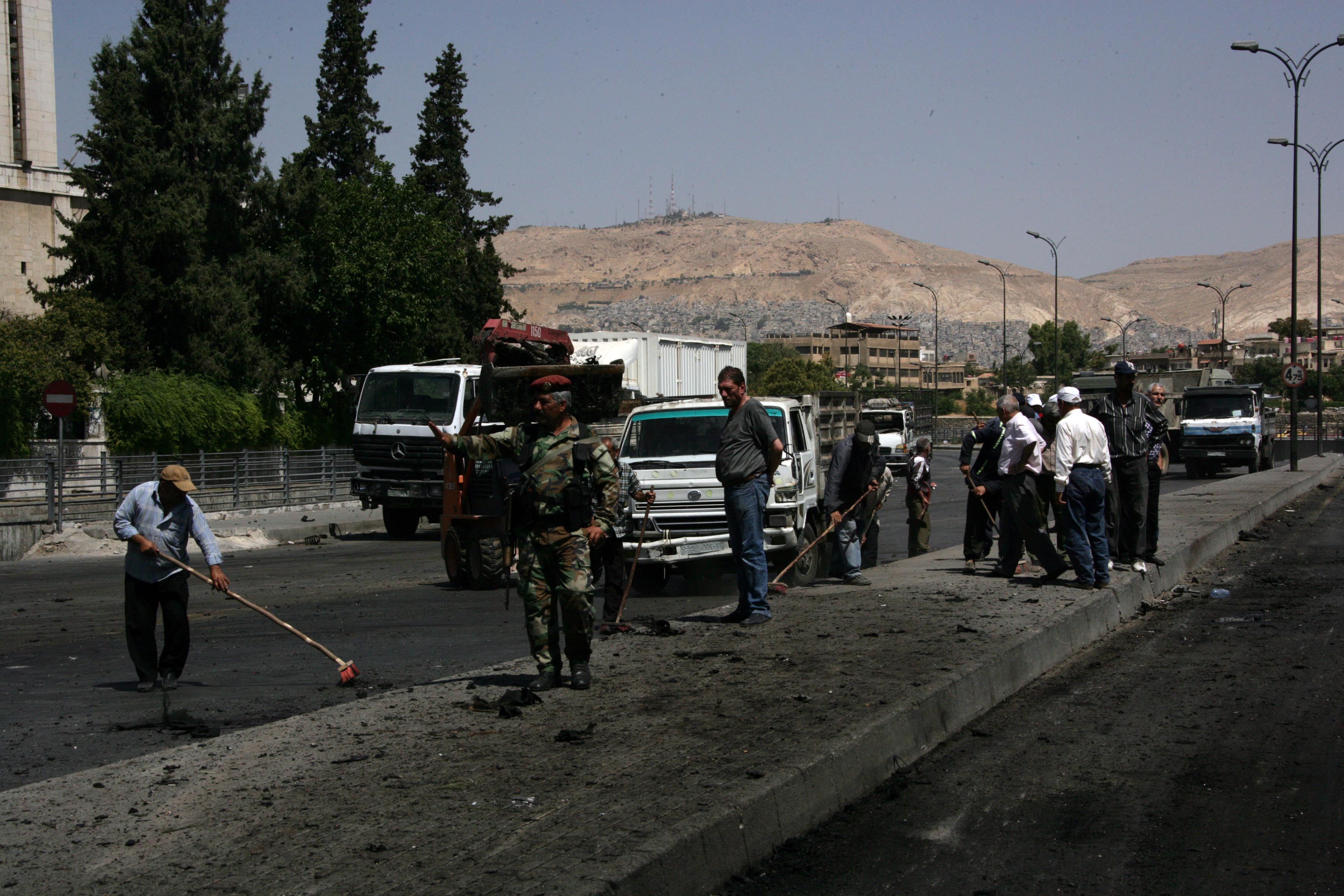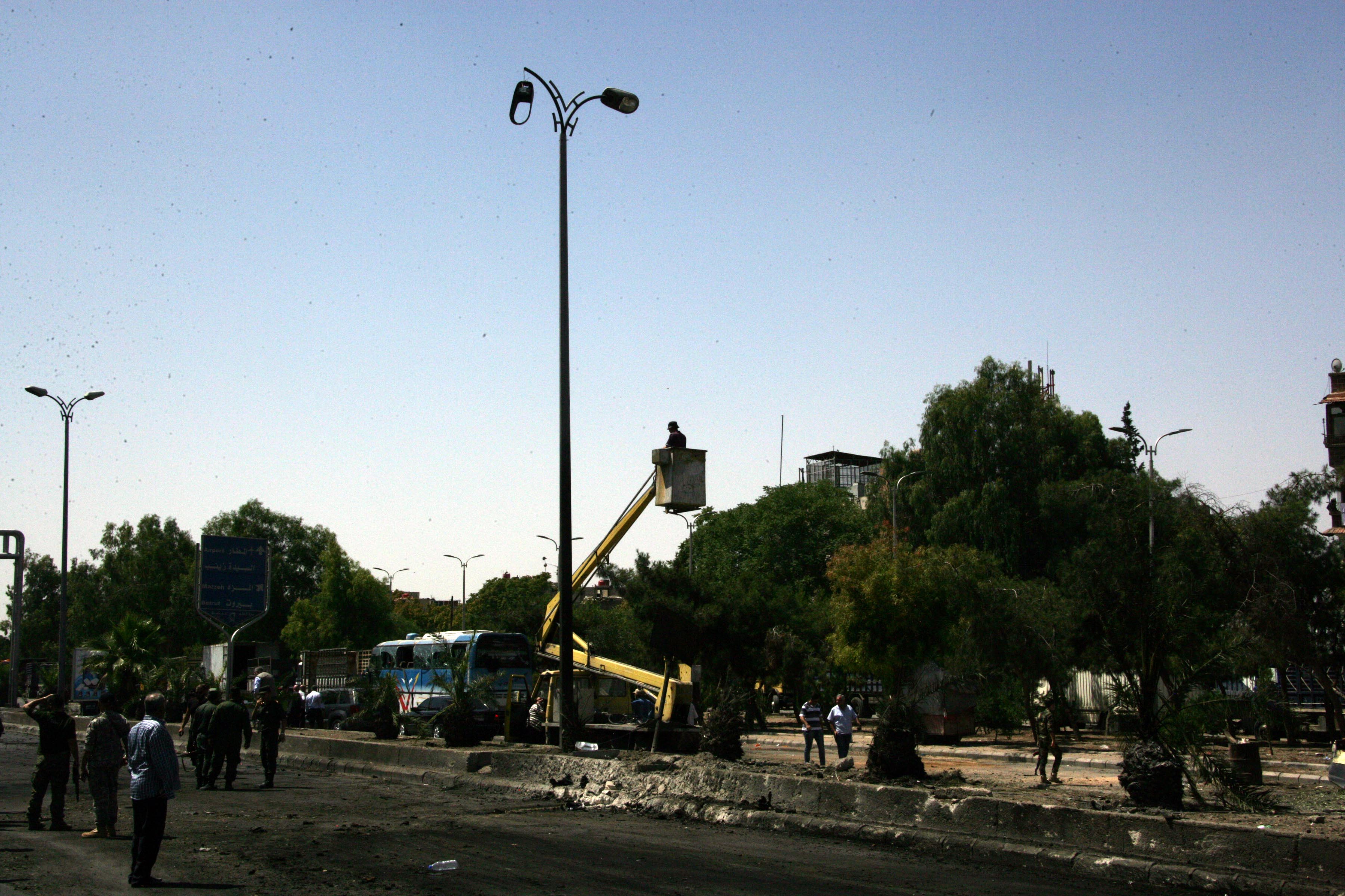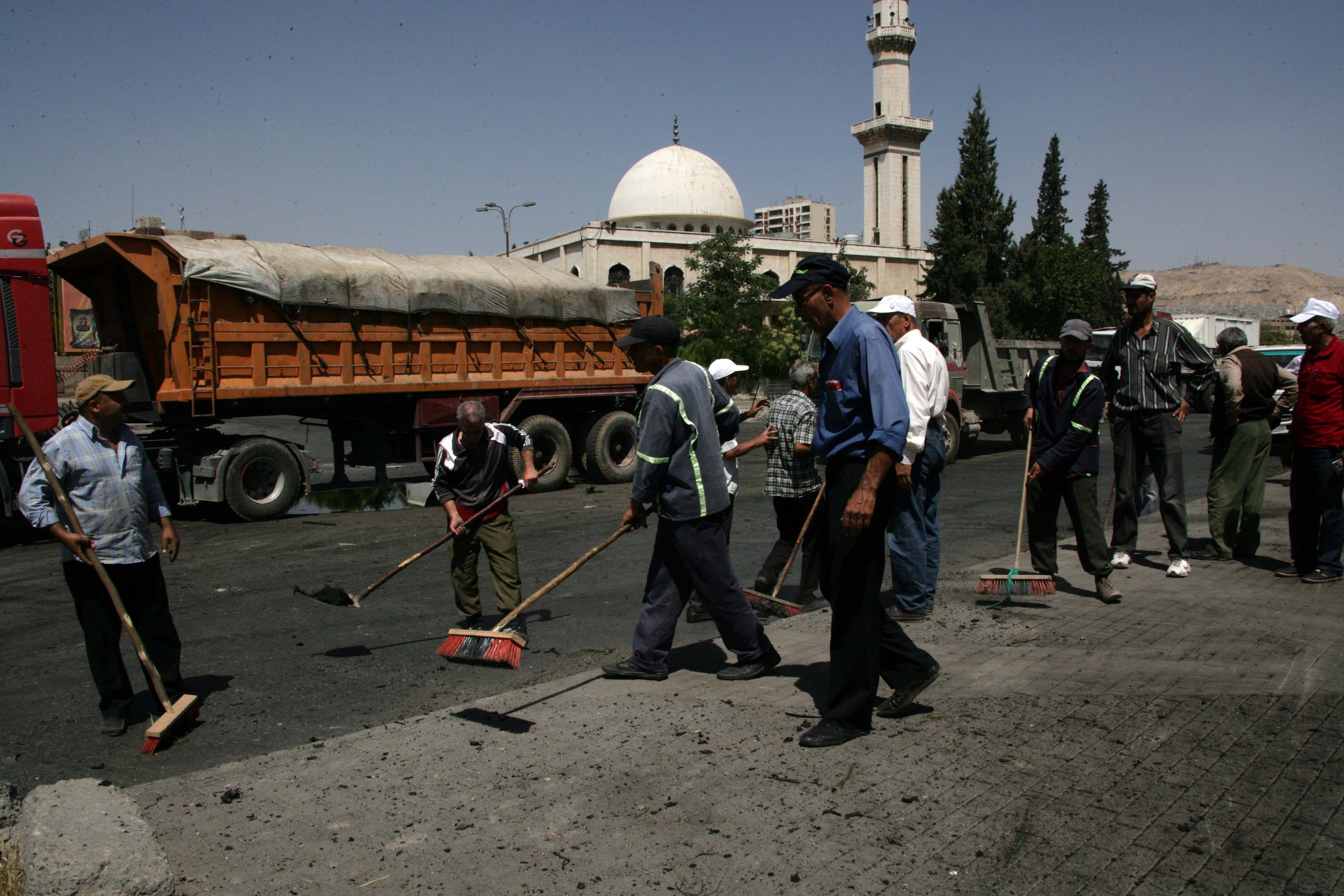 Le ministre de l’Administration locale et de l’Environnement et le gouverneur de Damas inspectent les lieux des attentats terroristes au nœud routier de l’aéroport à Damas
