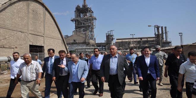 Homs/ Le président du Conseil des Ministres, Imad Khamis, a visité, aujourd’hui avec la délégation gouvernementale qui l’accompagne, la société publique des engrais à Homs et les deux usines de carbamide et de nitrate de Calcium dans la société.