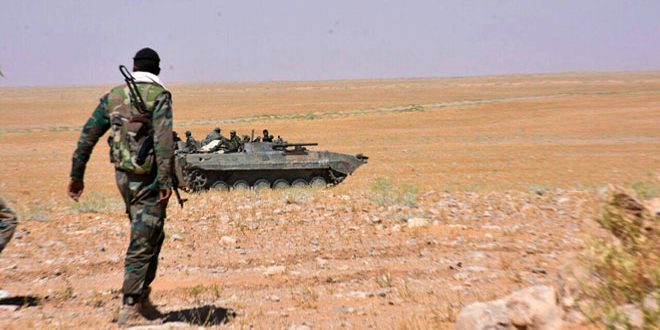 Homs / Une source militaire a indiqué que l’armée arabe syrienne avait expulsé les terroristes de « Daech » de nouvelles superficies dans la zone de Jeb Jarrah dans la banlieue est de Homs.