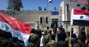 Quneitra / Avec la participation des habitants, le drapeau de la République arabe syrienne a flotté aujourd’hui au-dessus de la localité de Nabe’ Sakher dans la banlieue de Quneitra après sa …