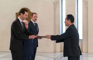 שר ההגנה מקבל את פני שגריר בחריין בסוריה