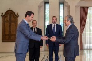 שר ההגנה מקבל את פני שגריר בחריין בסוריה
