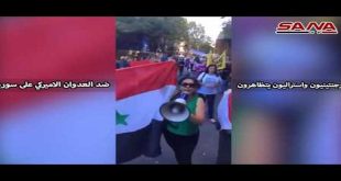 דמשק – סאנא ההתאחדות הלאומית של הסטיודנטים בסוריה סניף אוניברסטת דמשק ארגנה היום מעמד מחאה מול בנין האו”ם בדמשק כדי להוקיע את התוקפנות האמריקנית נגד סוריה. בהודעה שהופנתה למזכ”ל האו”ם …