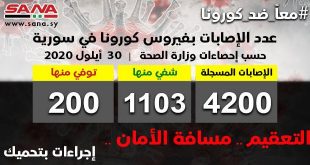דמשק – סאנא משרד הבריאות ברפובליקה הערבית הסורית דיווח כי 52 בני אדם חדשים נדבקו בווירוס הקורונה, בנוסף ל- 15אשר החלימו ו- 3 חולים מתו. משרד הבריאות ציין כי מניין …